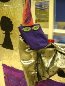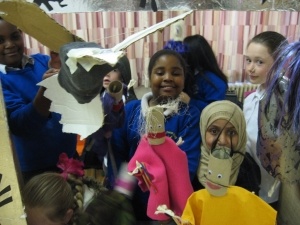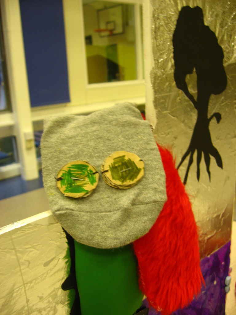 - Marionnettes en chaussettes (chaussette, tissu, carton, feutres et agrafeuse)