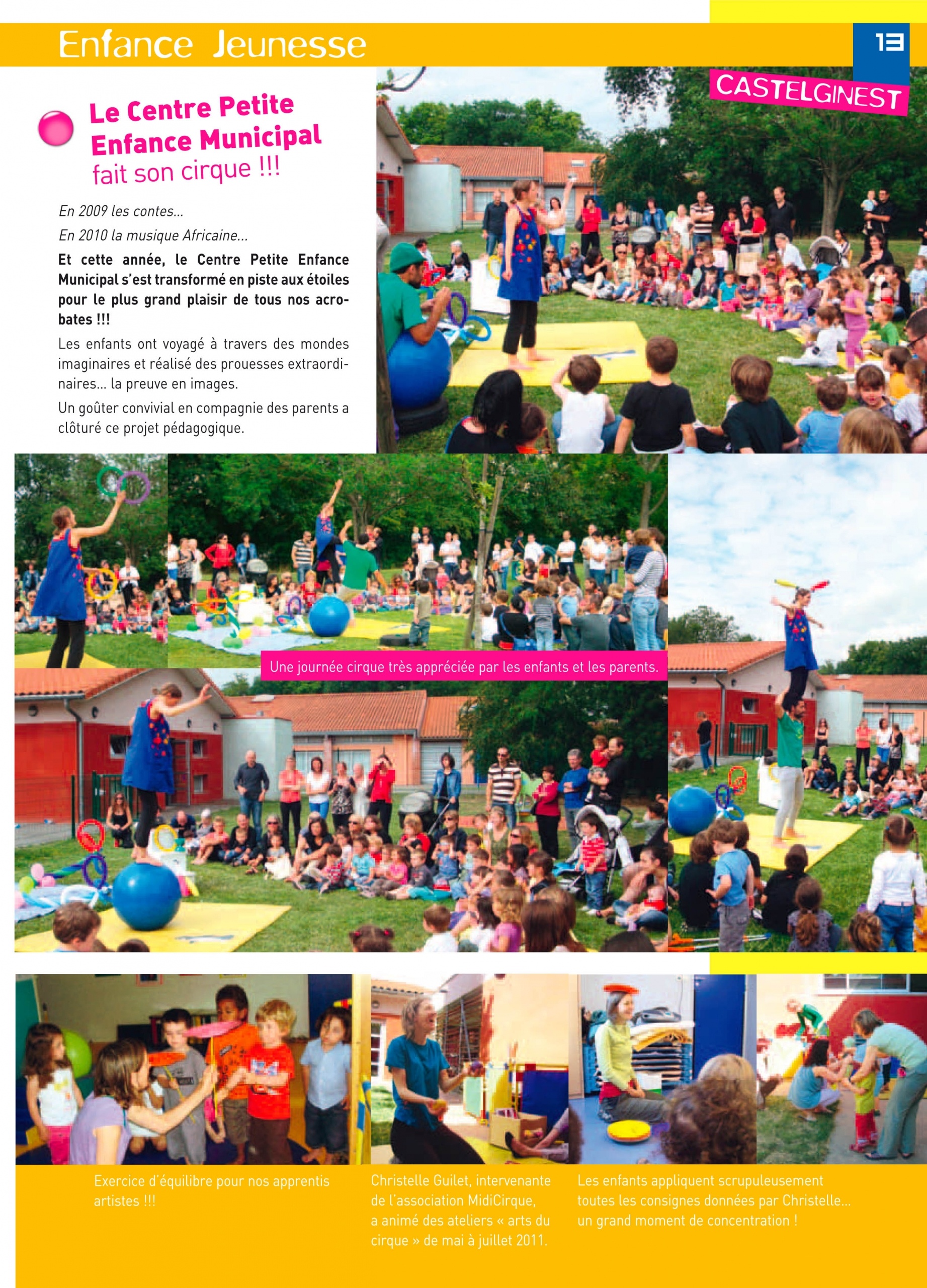 Projet d’atelier de cirque et de journée portes ouvertes des crèches de Castelginest avec les enfants de 18 mois à 3 ans.