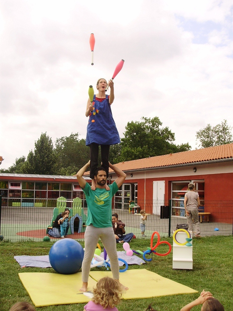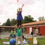 Il s’agit d’une série d’atelier d’Initiation aux Arts du Cirque, puis de la préparation du spectacle des enfants avec des tableaux collectifs de jonglerie et d’acrobatie et des numéros en petits groupes de spécialité.