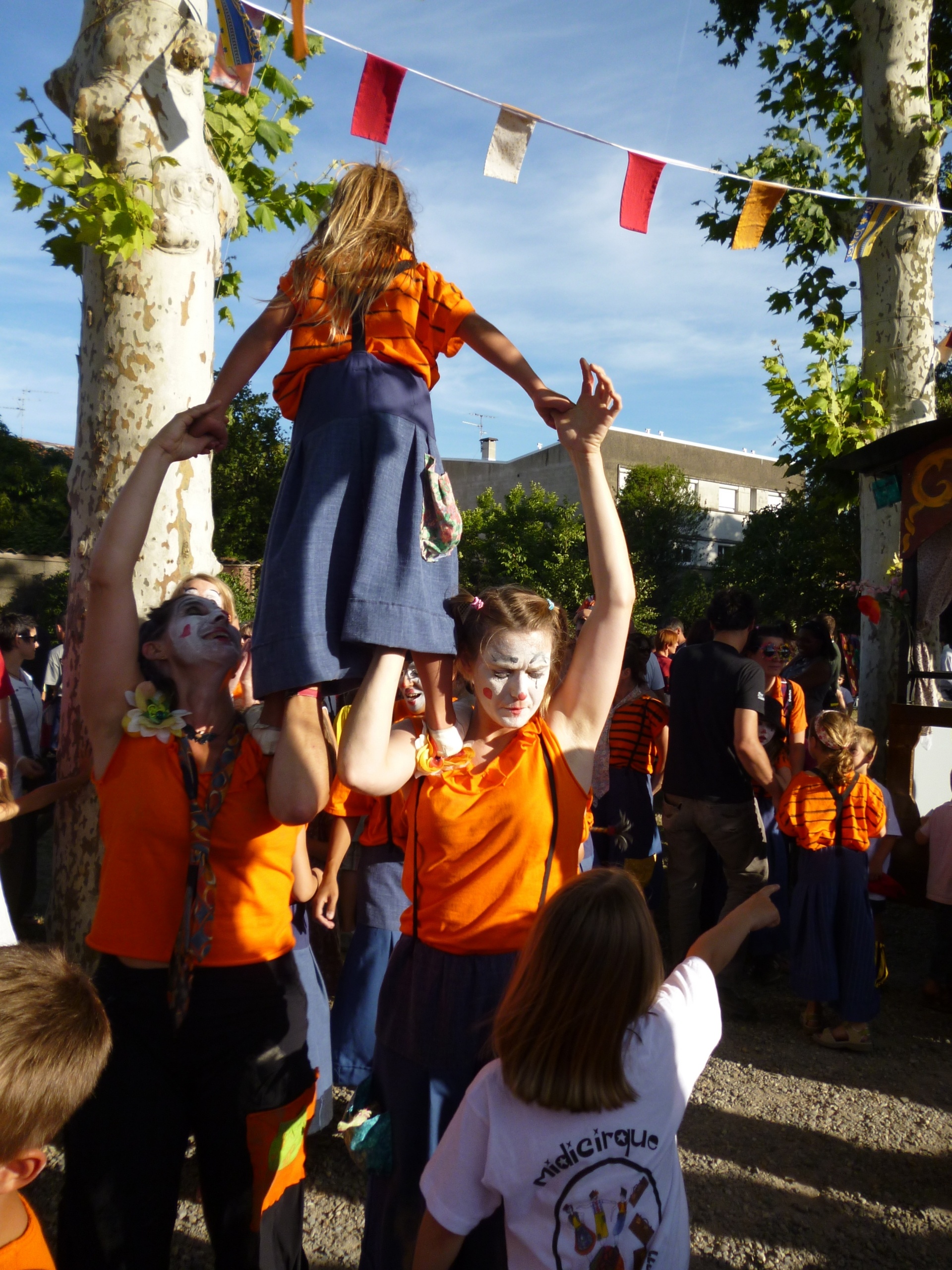 Notre cortège comptait 60 personnes, dont les enfants de 3 ateliers réguliers de cirque (centre culturel de Ramonville et atelier de Cugnaux), leur famille et les élèves des ateliers de cirque de MidiCirque, école de cirque itinérante, et leur famille.