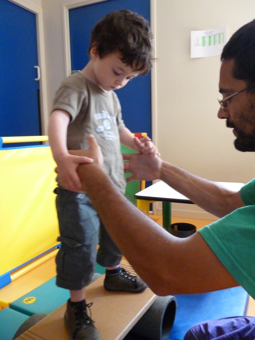 - Equilibre sur matériel, parcours d’équilibre avec boule, pédalettes, planche à rouleau et barre d’équilibre