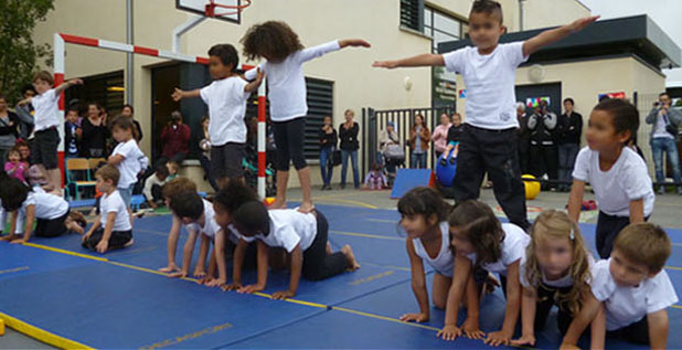 1. Acrobatie en solo (déplacements en quadrupédie, sauts de grenouille, lapin etc.), à plusieurs (par deux, trois ou plusieurs ex : le millepattes) et pour les grandes sections des petits portés acrobatiques (lit superposé, pyramide de chats)